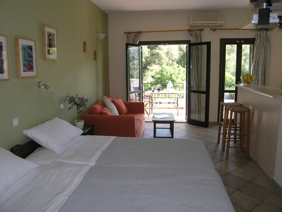 The studios are carefully looked after with the owner’s helpful family on hand for any help and assistance. The studios are pleasantly decorated and are very comfortable and spacious for 2-4 people. They are also ideal for families as children can stay comfortably in the same studio on the extra beds provided.