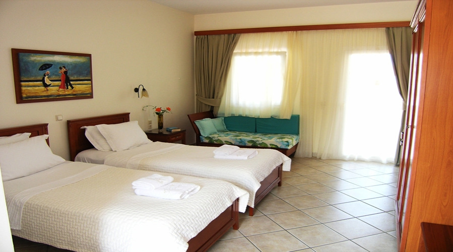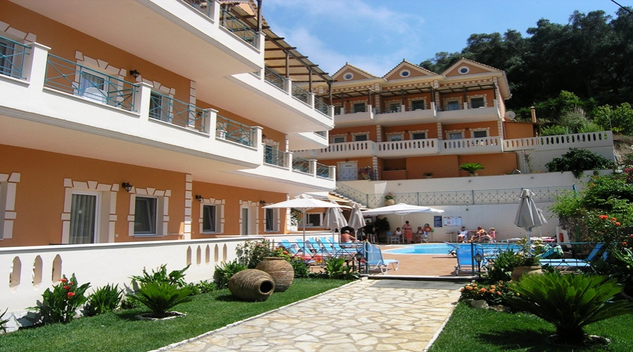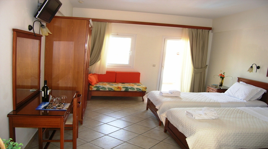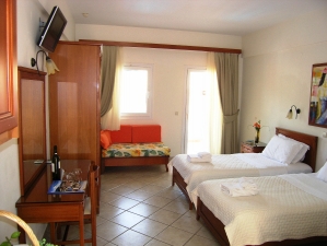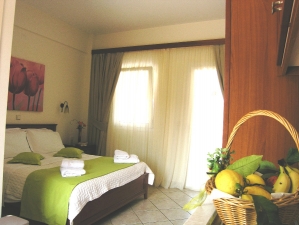 The rooms at Villa Andreas are spacious and well furnished and there is an attractive swimming pool area has sun beds and sun shades with plenty of flowers and greenery. The pool bar is open daily and offers refreshing drinks and snacks.